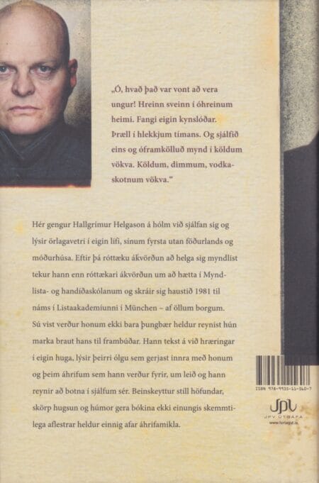 Hallgrímur Helgason er þúsundþjalasmiður í íslensku menningarlífi og hefur komið við í ýmsum kimum bókmenntanna auk þess að stunda myndlist og samfélagsumræðu. Hann lærði myndlist í Reykjavík og München og hefur frá árinu 1982 starfað sjálfstætt sem myndlistarmaður og rithöfundur. Fyrsta skáldsaga Hallgríms, Hella, kom út árið 1990 og síðan hefur hann sent frá sér fjölda skáldsagna auk leikrita, ljóðabóka og þýðinga. Skáldsögur hans hafa komið víða út erlendis, verið kvikmyndaðar og settar á svið. Nýjasta skáldsaga hans, Sextíu kíló af kjaftshöggum, er sjálfstætt framhald sögunnar af Gesti Eilífssyni í Segulfirði; Sextíu kíló af sólskini – þar lýsir Hallgrímur ferðalagi Íslendinga úr myrkum torfgöngum inn í raflýstar stofur og þaðan beint í dans á síldarpalli með tilheyrandi kossum og kjaftshöggum. Örlagasaga Gests hefur hitt lesendur í hjartastað og bækurnar notið mikilla vinsælda. Hallgrímur hefur hlotið ófáar viðurkenningar á ferli sínum sem rithöfundur. Árið 2021 var hann sæmdur Heiðursorðu Frakka fyrir framlag sitt til lista og bókmennta, hefur þrisvar verið tilnefndur til Bókmenntaverðlauna Norðurlandaráðs og bæði fengið Íslensku þýðingarverðlaunin og Íslensku hljóðbókaverðlaunin. Þá hefur hann hlotið Íslensku bókmenntaverðlaunin þrisvar sinnum, fyrir Höfund Íslands 2001, Sextíu kíló af sólskini 2018 og Sextíu kíló af kjaftshöggum 2021.