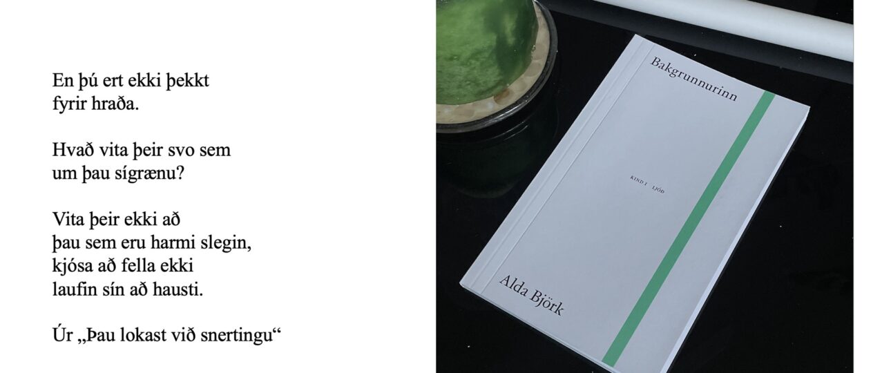 KIND útgáfa býður til útgáfuhófs í bókabúðinni Skáldu á Vesturgötu 10 miðvikudaginn 10. desember kl 17-19. Þar fögnum við útkomu ljóðabókar Öldu Bjarkar Valdimarsdóttur sem heitir Bakgrunnurinn. Skáldið les upp og áritar bókina. Léttar veitingar. Öll velkomin. Hlökkum til að sjá ykkur.