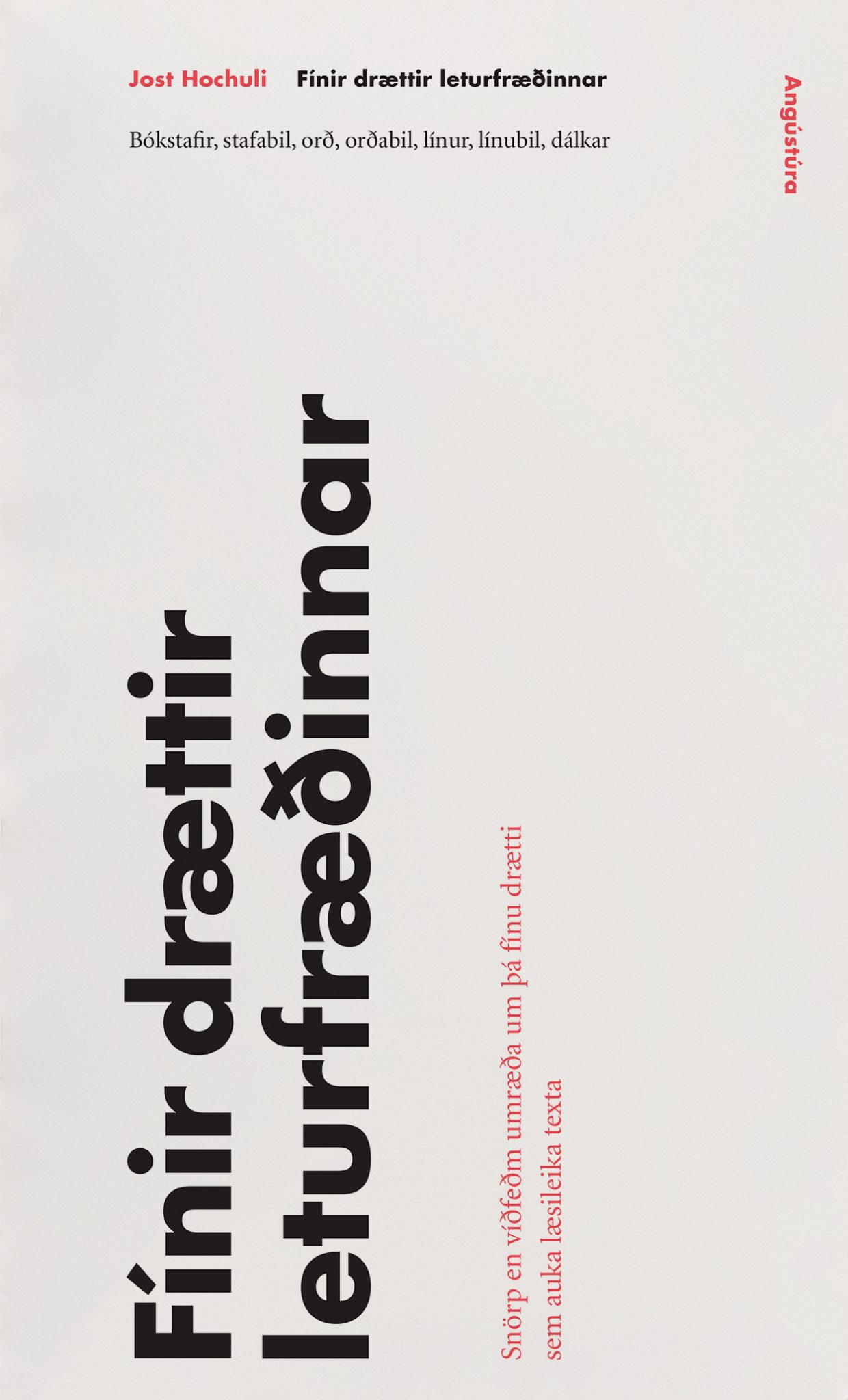 Fínir drættir leturfræðinnar var gefin út árið 1987 á sjö tungumálum, en kemur nú út í fyrsta skipti á íslensku. Bókin fjallar á hnitmiðaðan og aðgengilegan hátt um þá þætti sem skipta sköpum þegar læsileiki texta er annars vegar, svo sem bókstafina, orðið, línuna og andrýmið. Hér er þó um meira en handbók að ræða. Hvernig má það vera, spyr Jost Hochuli, að farið sé eftir öllum kúnstarinnar reglum en yfirbragð bókarinnar sé samt sem áður leiðinlegt? Hér má finna ýmsar lausnir, ekki síst í umbroti og framleiðslu bókarinnar sjálfrar.