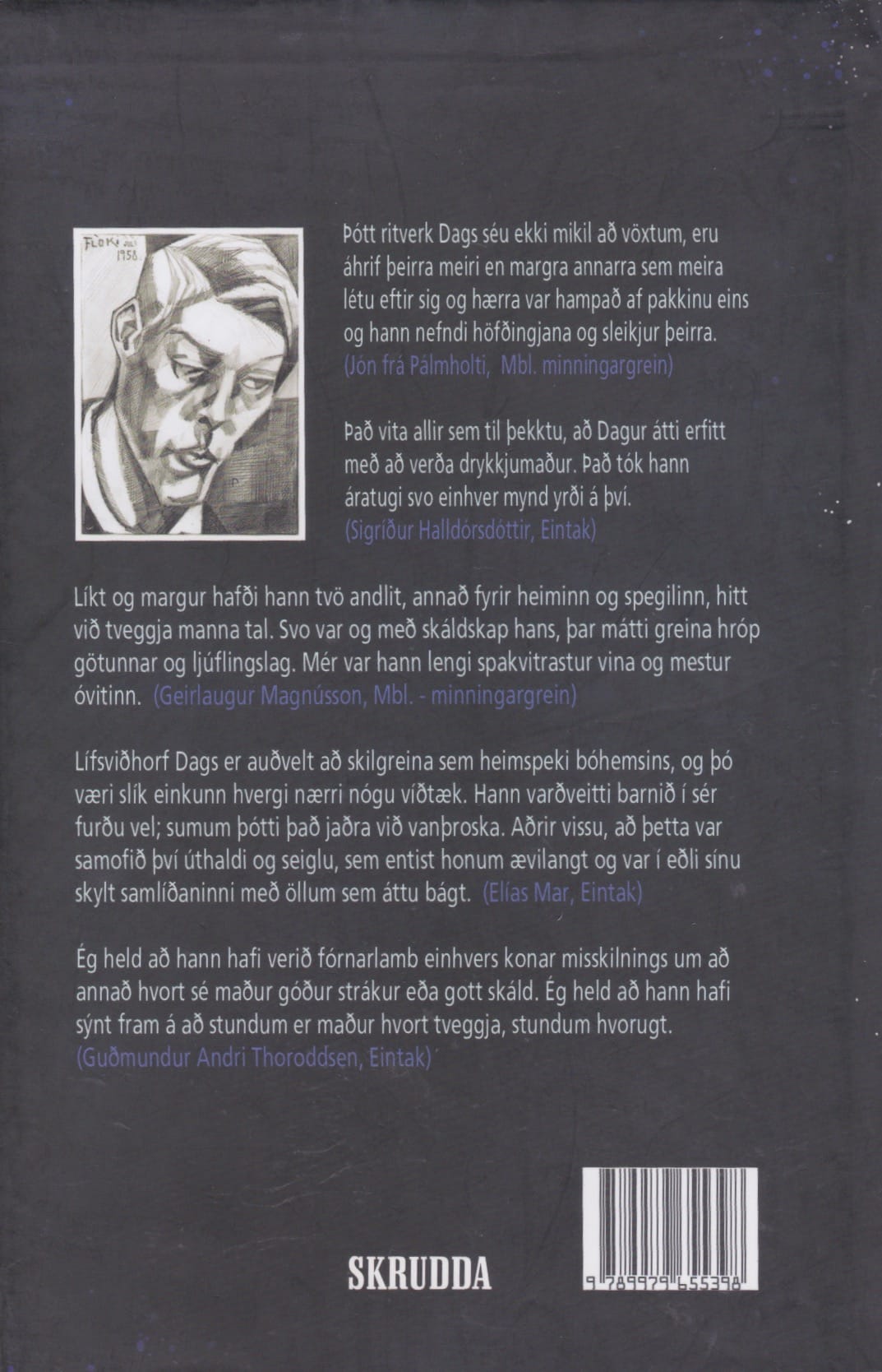 Það vita allir sem til þekktu, að Dagur átti erfitt með að verða drykkjumaður. Það tók hann áratugi svo einhver mynd yrði á því. (Sigríður Halldórsdóttir, Eintak)