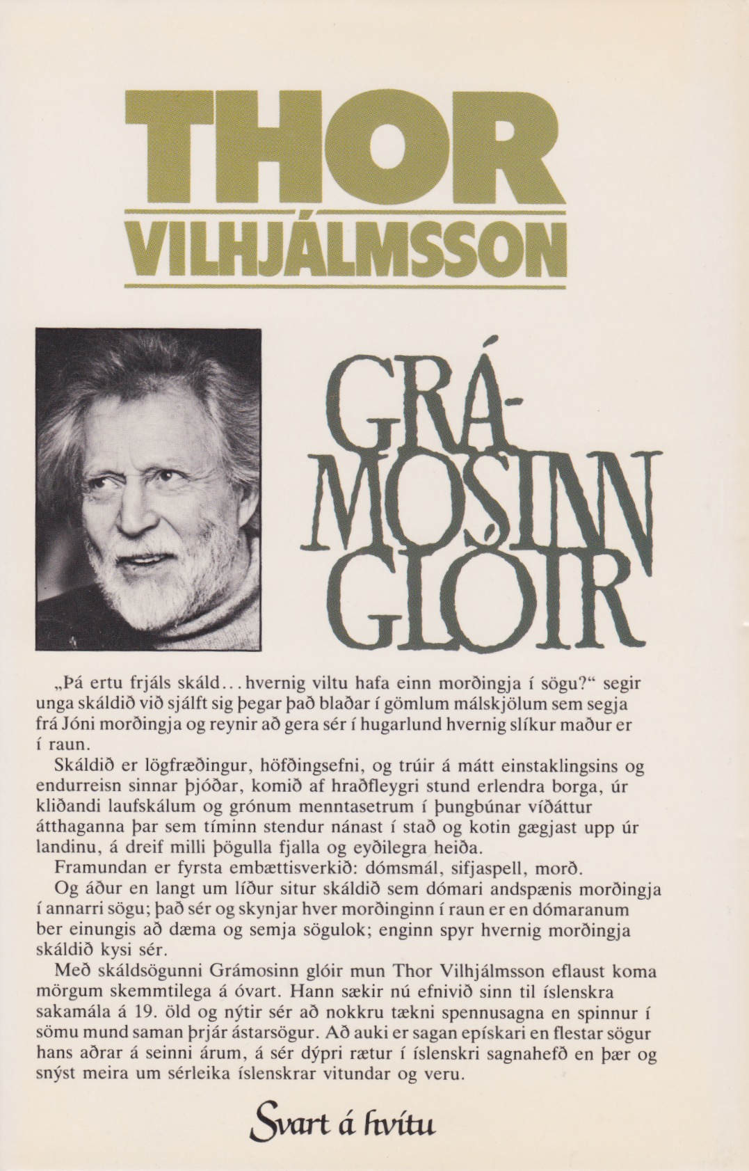 Með skáldsögunni Grámosinn glóir mun Thor Vilhjálmsson eflaust koma mörgum skemmtilega á óvart. Hann sækir nú efnivið sinn til íslenskra sakamála á 19. öld og nýtir sér að nokkru tækni spennusagna en spinnur í sömu mund saman þrjár ástarsögur. Að auki er sagan epískari en flestar sögur hans aðrar á seinni árum, á sér dýpri rætur í íslenskri sagnahefð en þær og snýst meira um sérleika íslenskrar vitundar og veru.