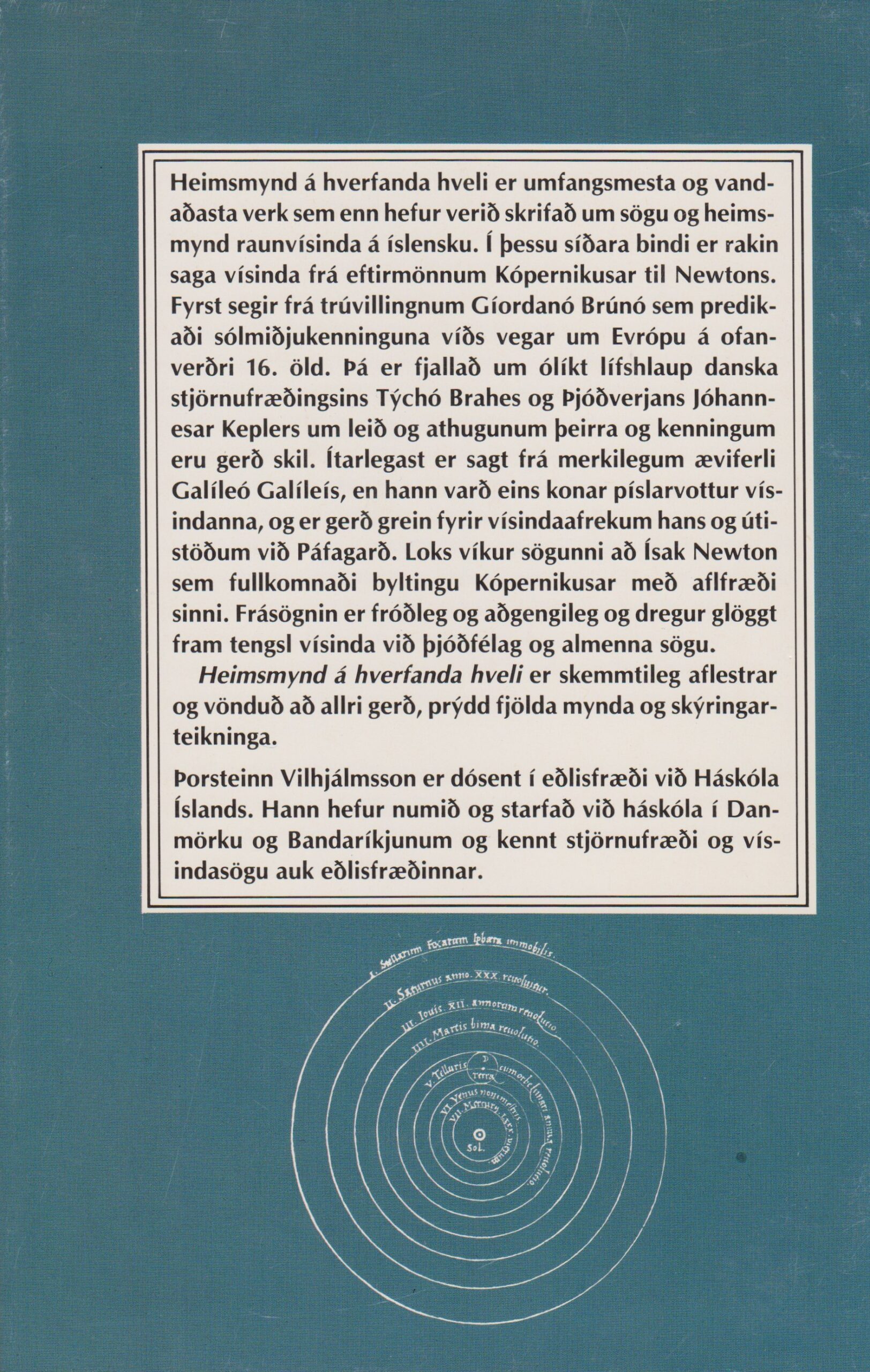 Hvaða mynd getum við gert okkur af heiminum út frá því sem sést með berum augum? Hvernig þróaðist stjarnfræðin á bökkum Nílar? Hvernig gat atómhugmyndin orðið til með Forngrikkjum? Var bara myrkur á miðöldum? Hvernig litu kirkjufeðurnir á heiðna þekkingu? Hvað lögðu Arabar til mála? Í hverju fólst bylting Kóperníkusar? Þessar spurningar og margar fleiri ræðir Þorsteinn Vilhjálmsson í Heimsmynd á hverfanda hveli. Í þessu fyrra bindi verksins er rakin saga vísinda, með hliðsjón af þeirri mynd af heiminum sem þau gefa hverju sinni, frá öndverðu til Kóperníkusar. Frásögn Þorsteins er fróðleg og aðgengileg og bókin öll prýdd fjölda mynda og skýringarteikninga. Hún er skemmtileg aflestrar, án þess að slakað sé á fræðilegum kröfum, um leið og hún bregður birtu sögunnar á okkar eigin vísindaskilning og heimssýn.
