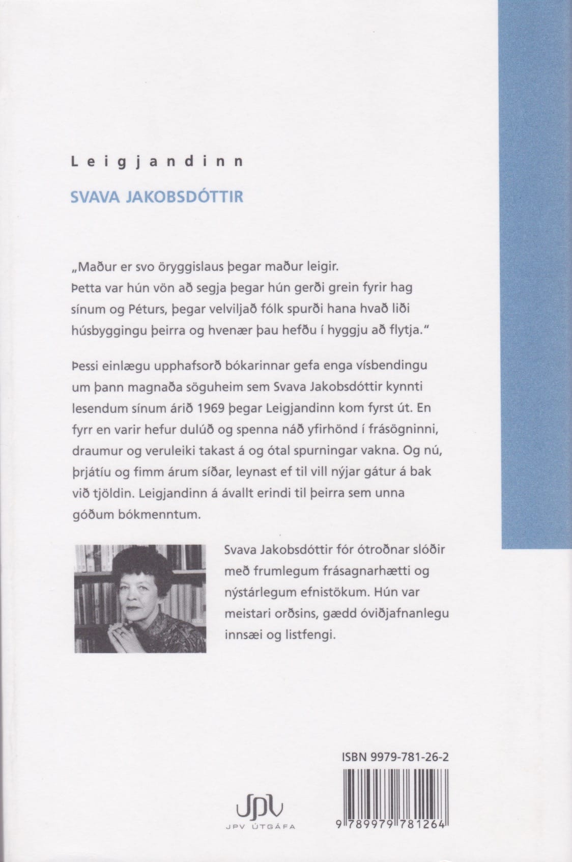 Þessi einlægu upphafsorð bókarinnar gefa enga vísbendingu um þann magnaða söguheim sem Svava Jakobsdóttir kynnti lesendum sínum árið 1969 þegar Leigjandinn kom fyrst út. En fyrr en varir hefur dulúð og spenna náð yfirhönd í frásögninni, draumur og veruleiki takast á og ótal spurningar vakna. Og nú, þrjátíu og fimm árum síðar, leynast ef til vill nýjar gátur á bak við tjöldin. Leigjandinn á ávallt erindi til þeirra sem unna góðum bókmenntum.