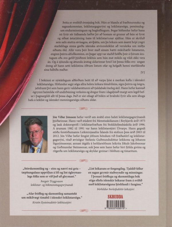 Í bókinni er nýstárlegum aðferðum beitt til að varpa ljósi á merkan kafla í íslenskri leiklistarsögu. Höfundur segir sögu allra helstu leikara tímabilsins, sigra þeirra og ósigra, jafnframt því sem hann gerir valdabaráttunni að tjaldabaki ítarleg skil. Hann hefur kannað ógrynni heimilda við undirbúning verksins og dregur fram í dagsljósið margt sem legið hefur í þagnargildi allt til þessa dags. Það er síst ofsagt að bókin sé hvalreki fyrir alla sem áhuga hafa á leiklist og íslenskri menningarsögu síðustu aldar.