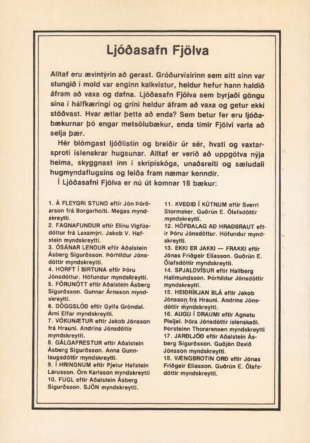Verið velkomin í nýja vefverslun Skáldu! Allir nýir viðskiptavinir fá 10% afslátt af fyrstu pöntun með kóðanum „fyrstapontun“. Loka